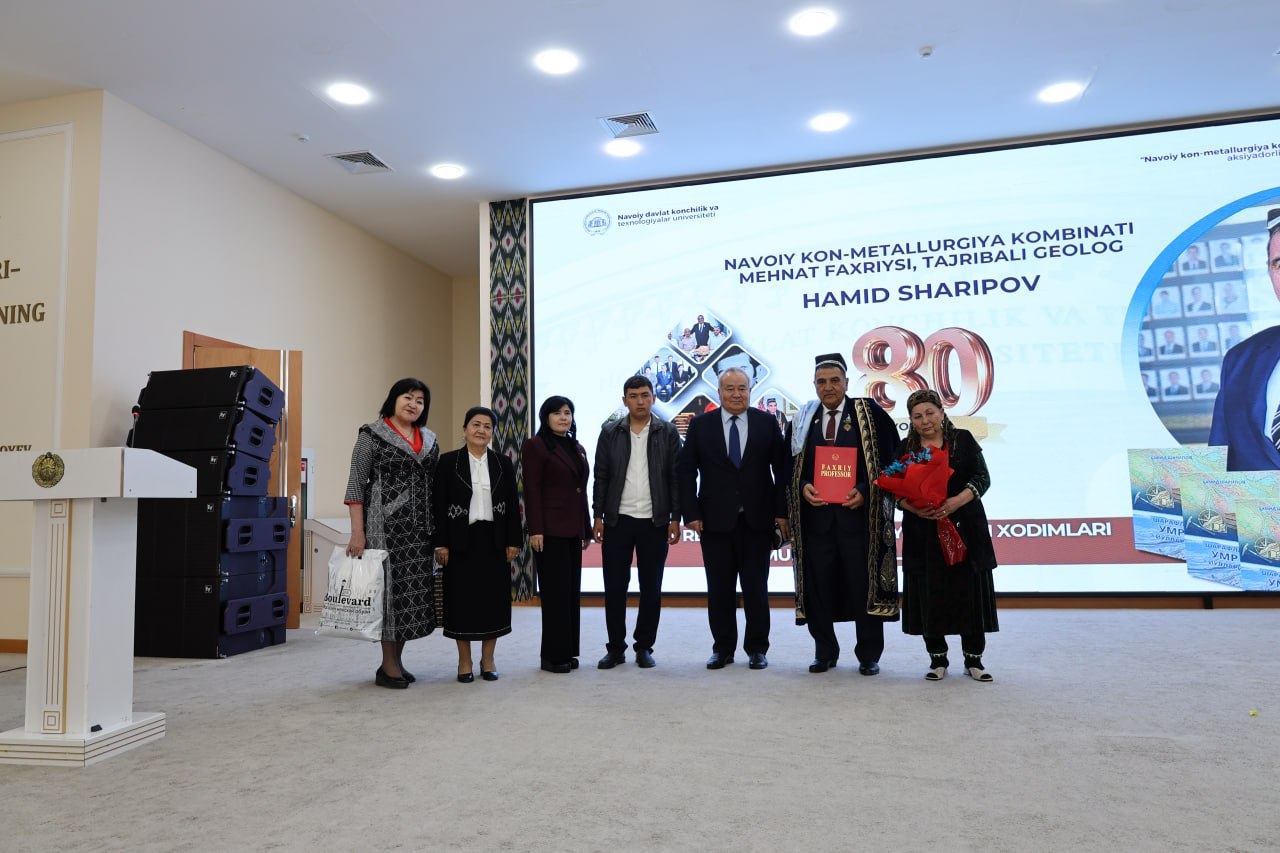 2026 yilning 4 aprelida “Geologiya sohasi xodimlari kuni” arafasida Navoiy davlat konchilik va texnologiyalar universiteti anjumanlar zalida Navoiy kon-metallurgiya kombinati faxriysi, Fanlar akademiyasi Navoiy bo‘limi qoshidagi “Uztoz olimlar va mehnat faxriylari maslahatxonasi” faol a’zosi, tajribali geolog Hamid Sharipovning 80 yoshli yubileyiga bag‘ishlangan tadbir o‘tkazildi.